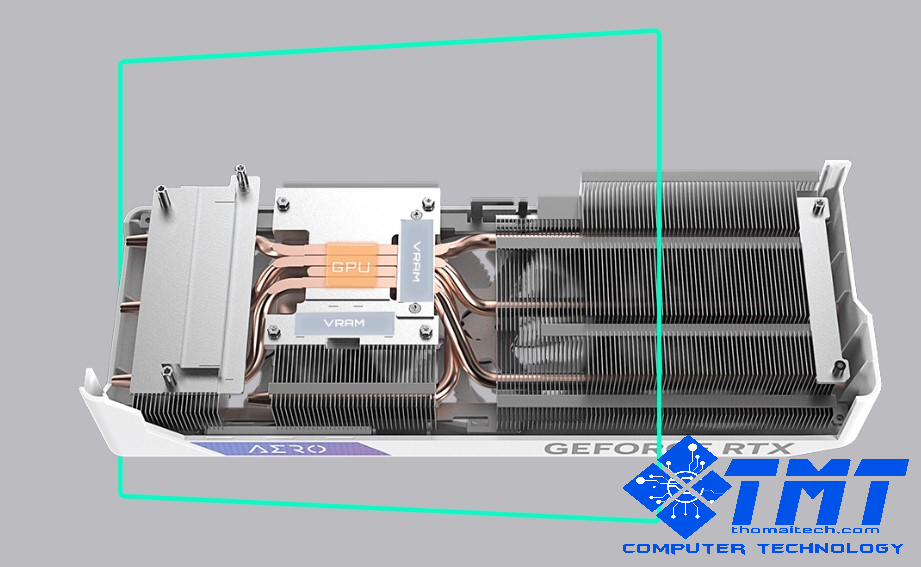 Ống dẫn nhiệt làm bằng đồng nguyên chât, được thiết kế để tối ưu hóa diện tích tiếp xúc với GPU. Ống dẫn nhiệt cũng bao phủ VRAM thông qua một tấm kim loại tiếp xúc để đảm bảo cho khả năng làm mát thích hợp trong từng tình huống.