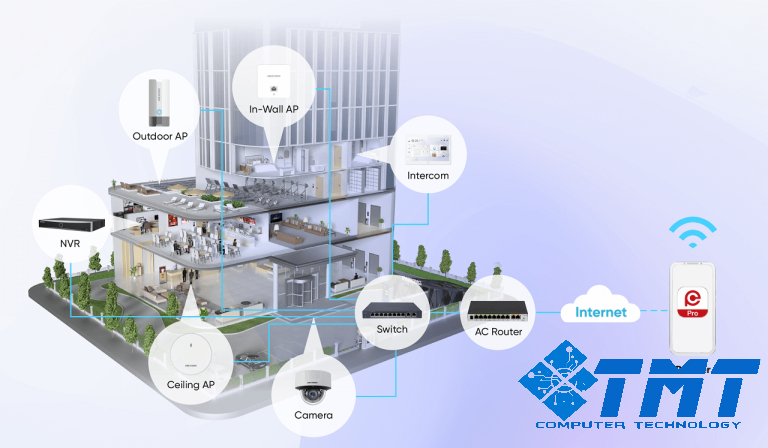 - Bộ lưu trữ NAS và giải pháp đám mây: Để hỗ trợ các doanh nghiệp SMB bảo quản dữ liệu an toàn, Hikvision cung cấp các giải pháp lưu trữ NAS (Network Attached Storage) và tích hợp với công nghệ đám mây, đảm bảo dữ liệu được lưu trữ an toàn và có thể truy cập từ bất cứ đâu.